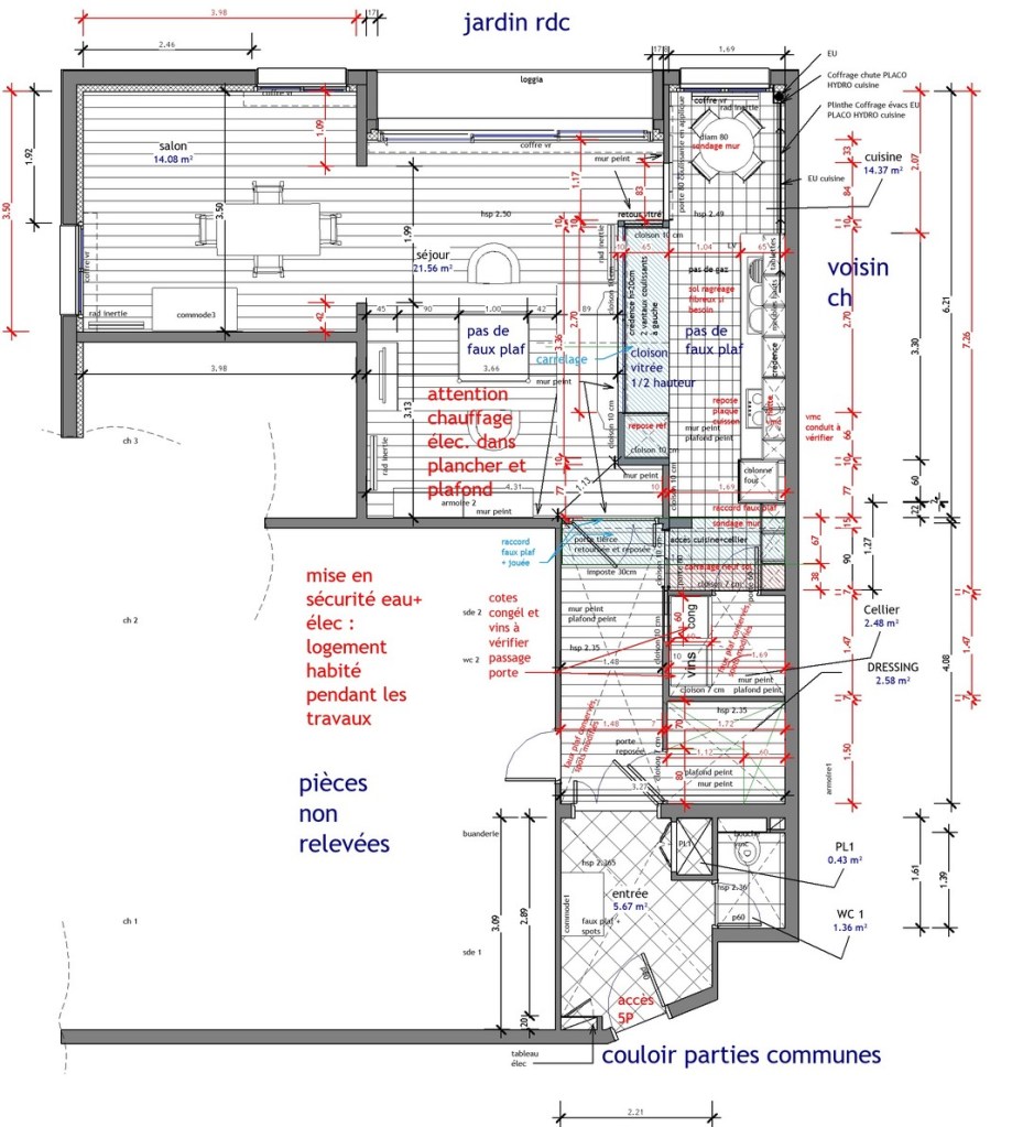 rdc : logement 5 P aménagement partiel -68 m²-