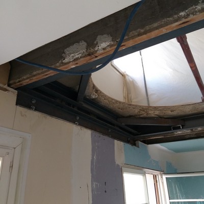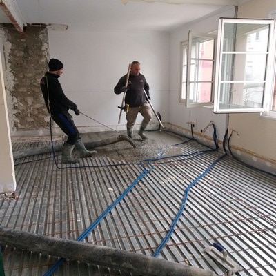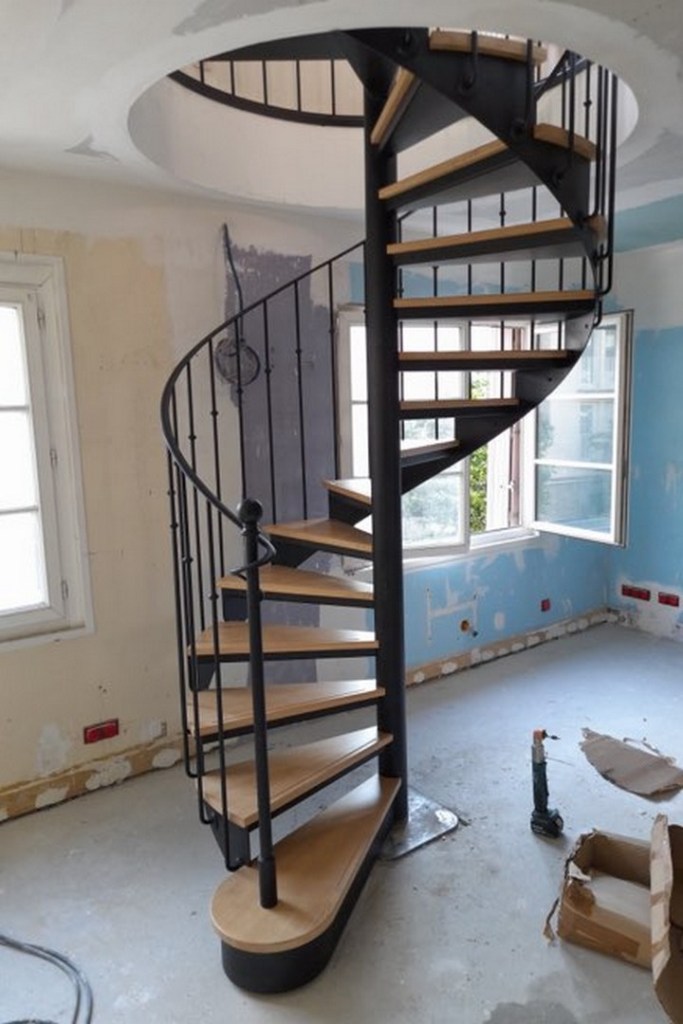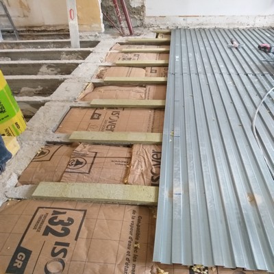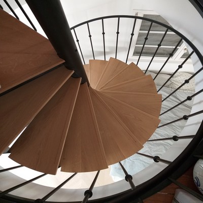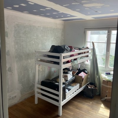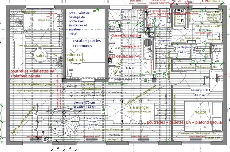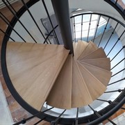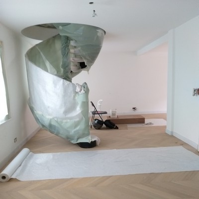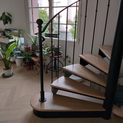En 2017, après une première intervention partielle au R+2, qui a été réalisée sur les pièces humides du futur « duplex haut », l’histoire continue en 2022, avec le réaménagement complet du R+1, avec la création de cette trémie et de l’escalier intérieur hélicoïdal.