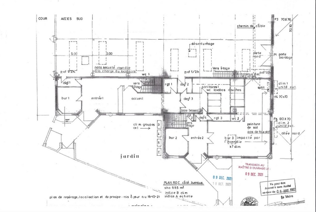 surface RDC bureaux et entrepôt 885m²
