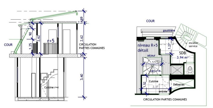 Logement en duplex aux niveaux R+4/R+5 construit milieu 19ème siècle et surélevé milieu
