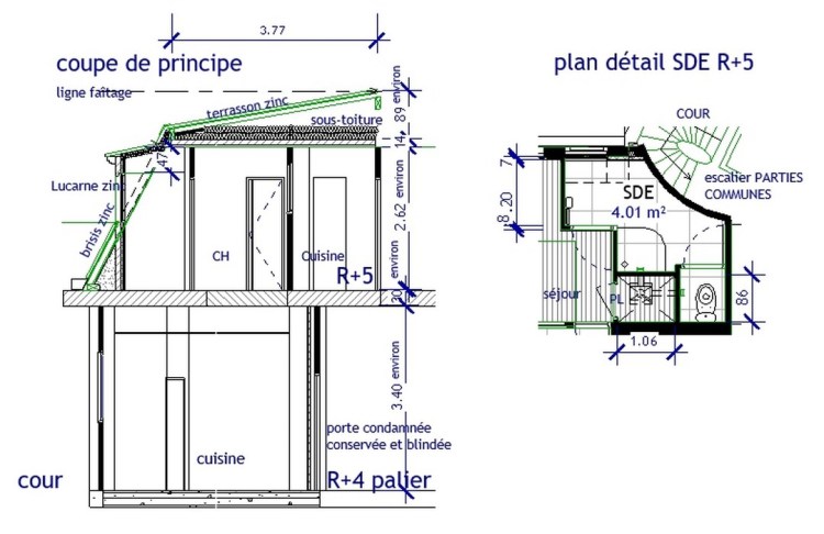 R+4 soit 205 m² surface géomètre et R+5 combles soit 42 m² surface géomètre