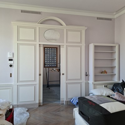 -L’accès depuis la salle à manger à la chambre d’amis est créé. Cette chambre d’amis permet le passage vers sa salle d’eau attenante avec un accès vers le couloir arrière.